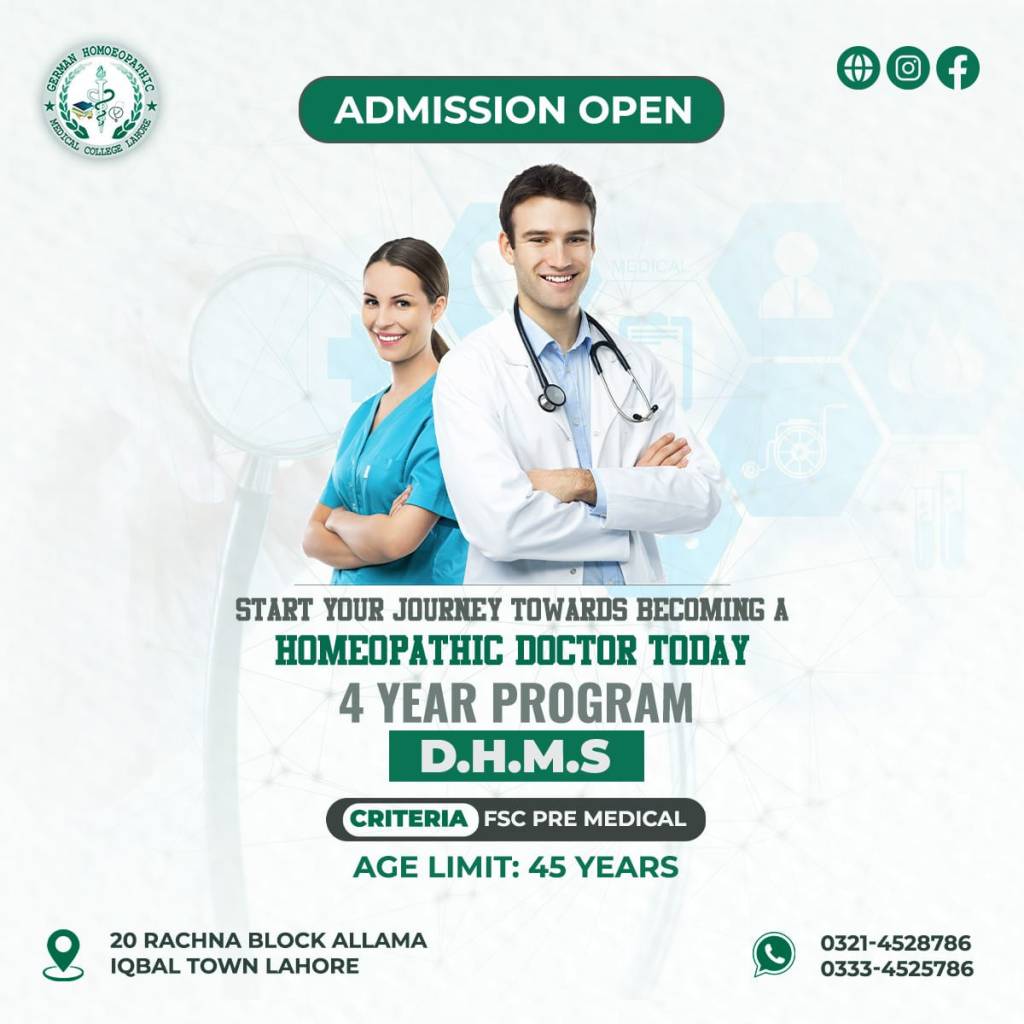 Admission open DHMS diploma in homoeopathic medical systems recognized by National Council For Homeopathy Government of Pakistan